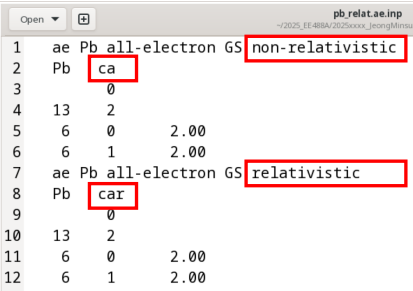 gedit pb_relat.ae.inp pb_non_relat.ae.inp